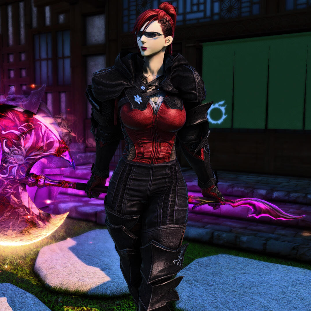 Confident and sultry, Zoe tends to carry herself as if she commands any space she enters. This is confidence born both from hard earned skill and ingrained as the way she approaches everything. If she is in control she can make sure nothing goes wrong or at least keep trouble to a minimum.She values friendship and above all else loyalty because throughout her life they are things that she has found to be sparse. This is a fact driven home even more for her by the simple truth that people eventually go their own way or are often called away for one reason or another. As a result she has learned to live in the moment and savor what happiness and pleasures she can find.Through hard work and dedication she has elevated herself above the rank and file. Though the scars of her past and her obsession with settling those scores has left her viewed as a loose cannon by some. Her results though undeniable are not enough to secure a commission given these facts and so she works as an adventurer and mercenary rather than one of the formally enlisted.Her freelance work though has not been without merit. Both helping her to cope with her past and earning her a reputation that ensures her skills are often in demand by those who keep Limsa Lominsa safe from harm. She has found the work satisfying for these reasons as it both honors her losses and those who helped to keep her from a less savory lot in life.One day she was approached by an old flame with an offer of work. Though it no was bound to bring its own challenges and complications she decided to accept and made her way from the warm shores of La Noscea to the chilled peaks of Coerthas. Her life from there was a roller coaster both personally and professionally but the chaos is where she always thrived. Though one surprise she never saw coming was finding someone to call her own even as she explored the far shores of Hingashi.