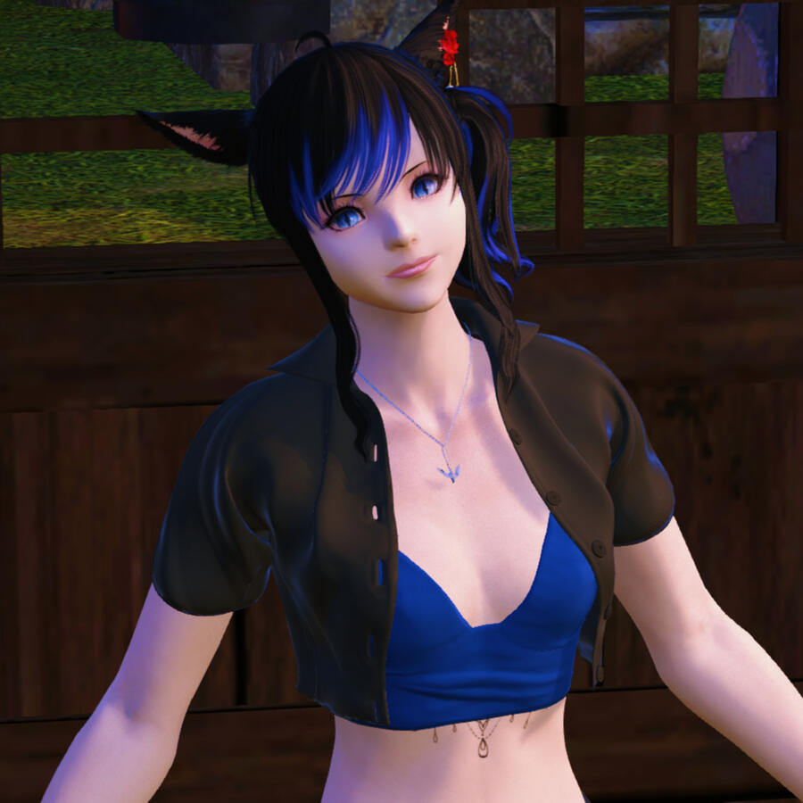 Confident and sultry, Zoe tends to carry herself as if she commands any space she enters. This is confidence born both from hard earned skill and ingrained as the way she approaches everything. If she is in control she can make sure nothing goes wrong or at least keep trouble to a minimum.She values friendship and above all else loyalty because throughout her life they are things that she has found to be sparse. This is a fact driven home even more for her by the simple truth that people eventually go their own way or are often called away for one reason or another. As a result she has learned to live in the moment and savor what happiness and pleasures she can find.Through hard work and dedication she has elevated herself above the rank and file. Though the scars of her past and her obsession with settling those scores has left her viewed as a loose cannon by some. Her results though undeniable are not enough to secure a commission given these facts and so she works as an adventurer and mercenary rather than one of the formally enlisted.Her freelance work though has not been without merit. Both helping her to cope with her past and earning her a reputation that ensures her skills are often in demand by those who keep Limsa Lominsa safe from harm. She has found the work satisfying for these reasons as it both honors her losses and those who helped to keep her from a less savory lot in life.One day she was approached by an old flame with an offer of work. Though it no was bound to bring its own challenges and complications she decided to accept and made her way from the warm shores of La Noscea to the chilled peaks of Coerthas. Her life from there was a roller coaster both personally and professionally but the chaos is where she always thrived. Though one surprise she never saw coming was finding someone to call her own even as she explored the far shores of Hingashi.